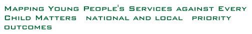 Howard has audited and mapped Every Child Matters outcomes against young person's substance misuse provision for Manchester and is now completing similar exercises for Salford including PSA/LAAs. This auditing helps inform Children's Services integration and commissioning and configuring services to maximize impact on ECM outcomes without undermining key activities and NTA expectations.